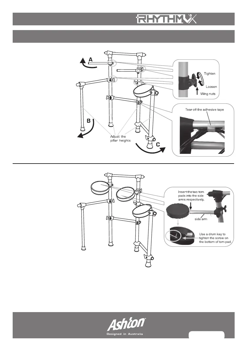 2. ATTACHING THE TOM PADS: