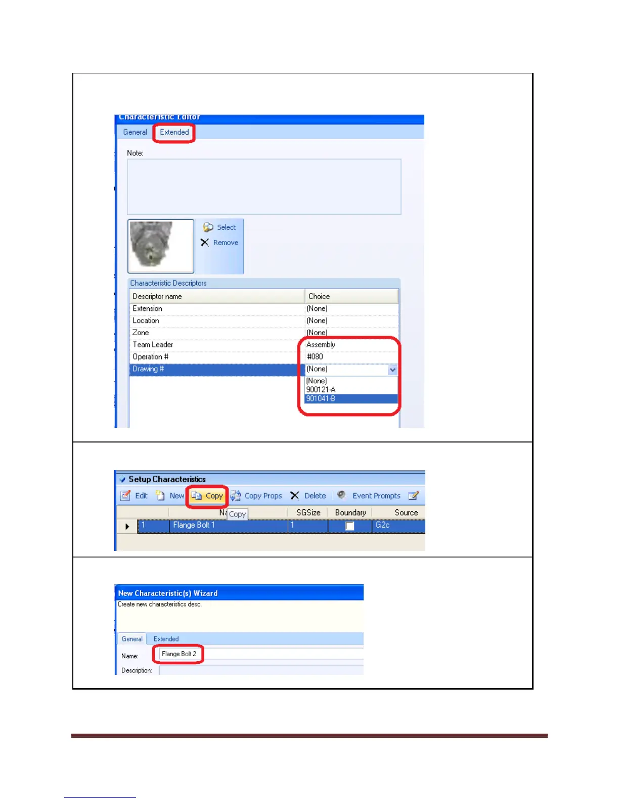 7. Select Flange Bolt 1 and click Copy. This will copy the characteristic.