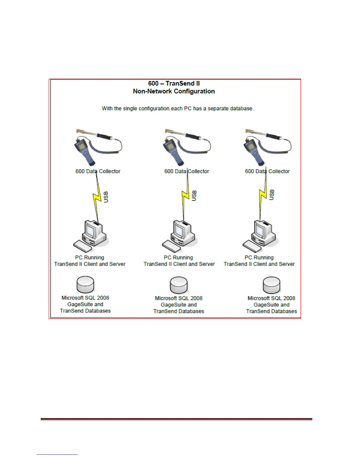 Note: With the non-networked configuration the 600s are tied to their
