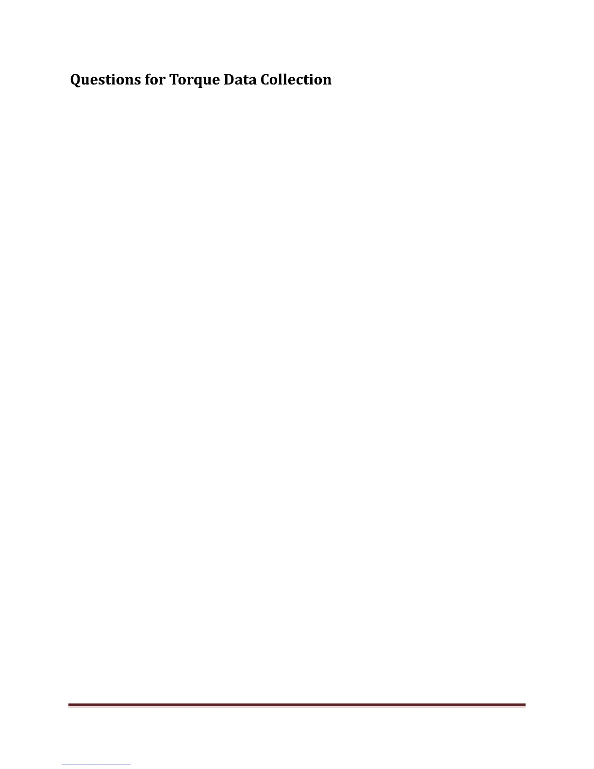 5. What are the critical torque measurements that you need to audit or collect data on?