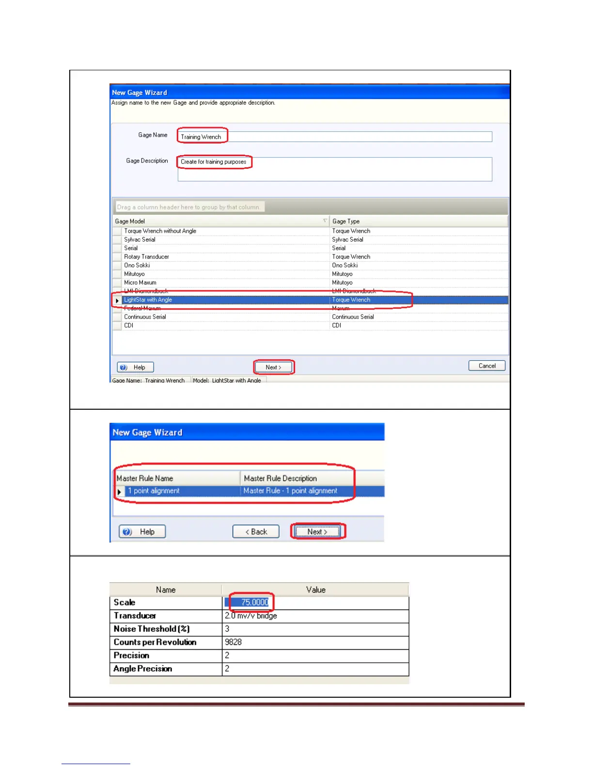 4. Name the gage, description and gage model as shown. Select the Click Next.