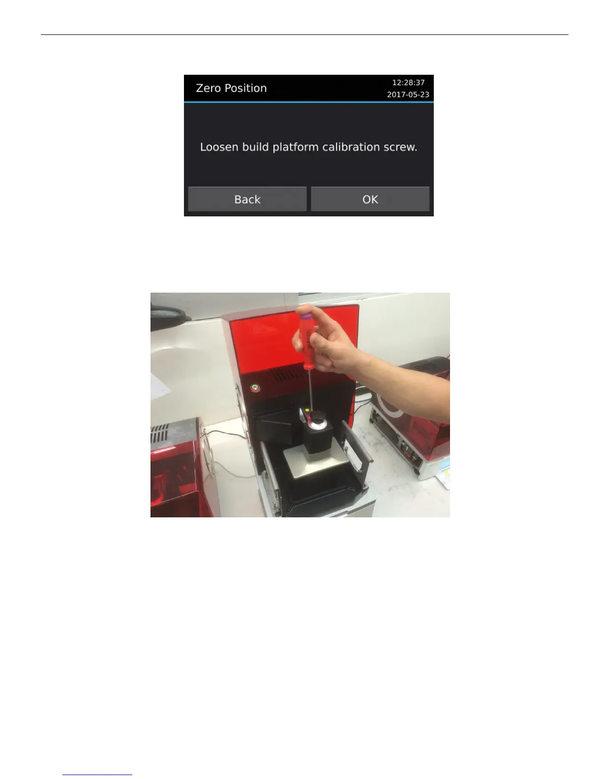 4. Loosen the build platform calibration screw. This can be done with a 4mm hex key