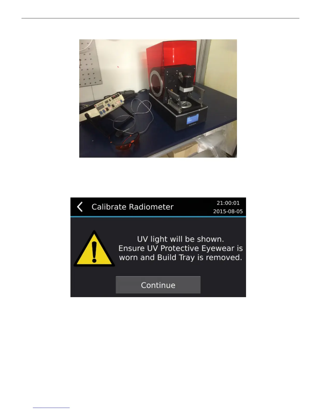 1. Go to menu item Maintenance > LED > Calibrate Radiometer. Click “Continue” at