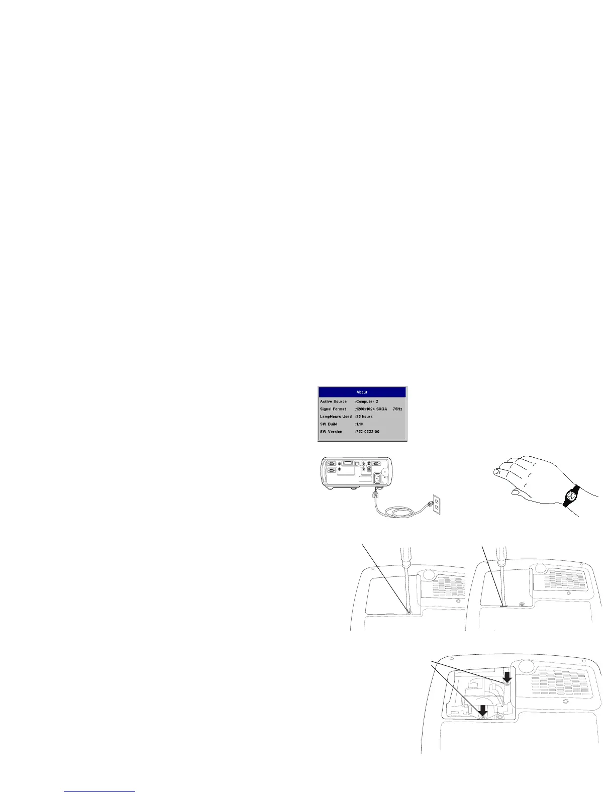• Do not drop the lamp module. The glass may shatter and cause injury.