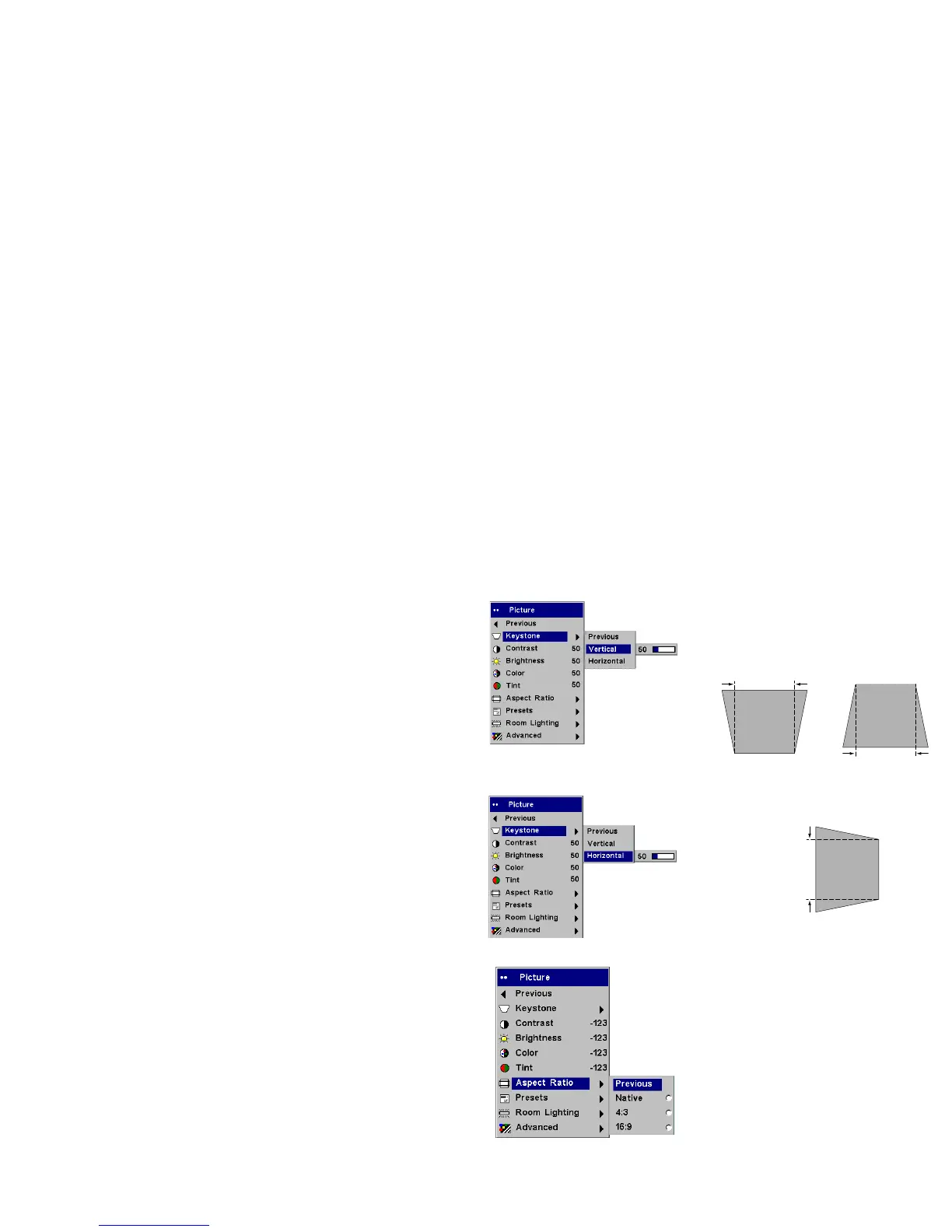 Вертикальные трапецеидальные искажения: регулирует изображение по