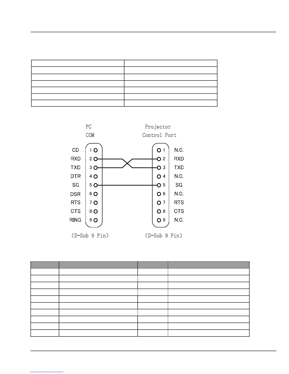 Connect the computer and projector with RS232 cross cable.