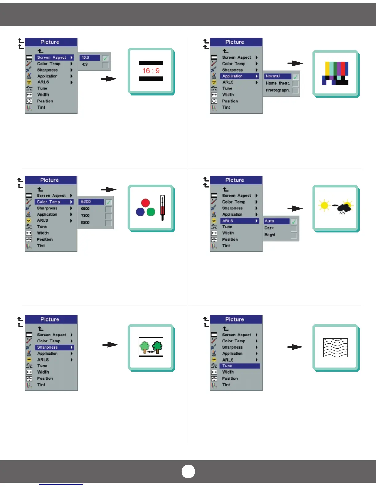 Wählen Sie die Anwendung-Einstellung, um die Bildqualität für die gewählte Andwendung zu optimieren