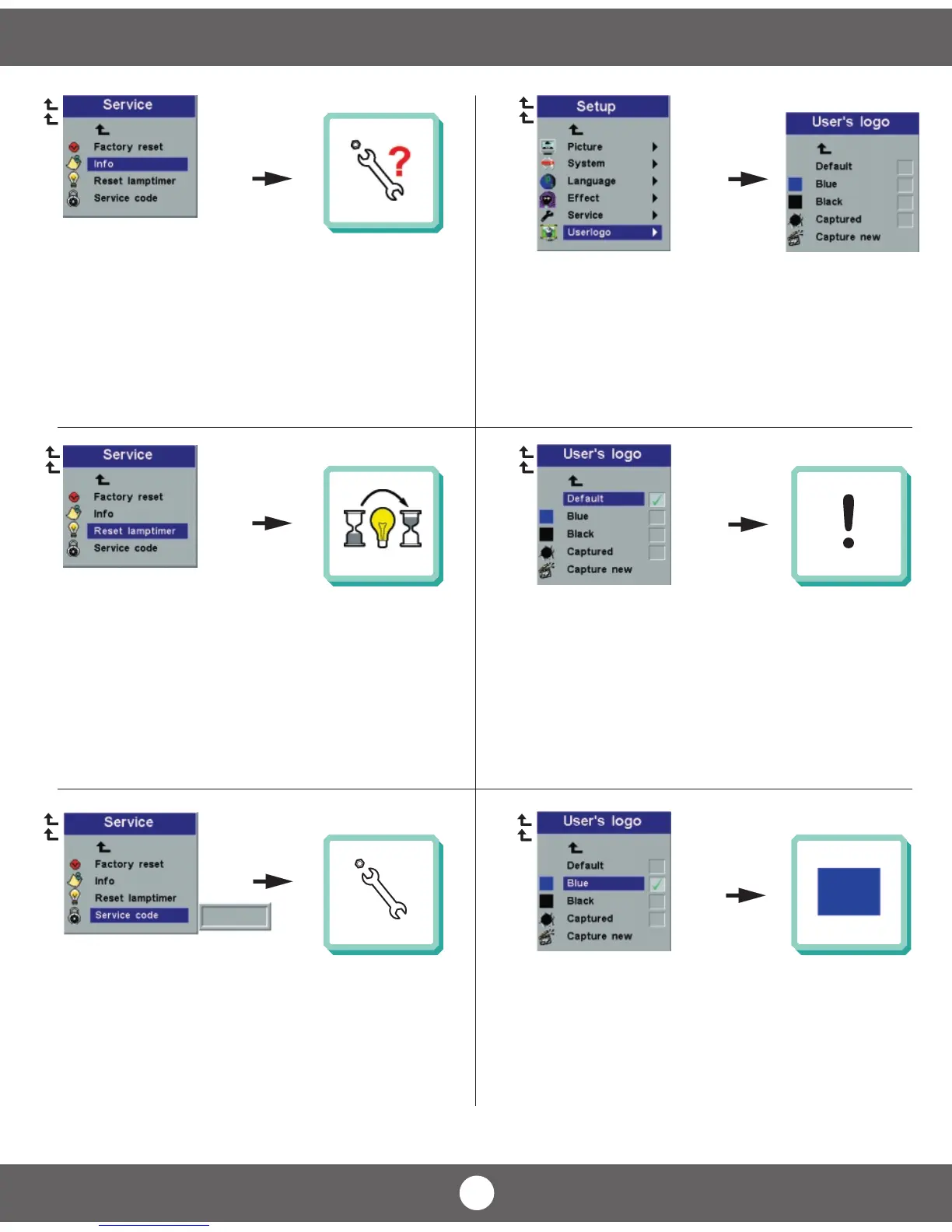 Projects the default projector logo screen when no source is connected. Ref. Chap. H