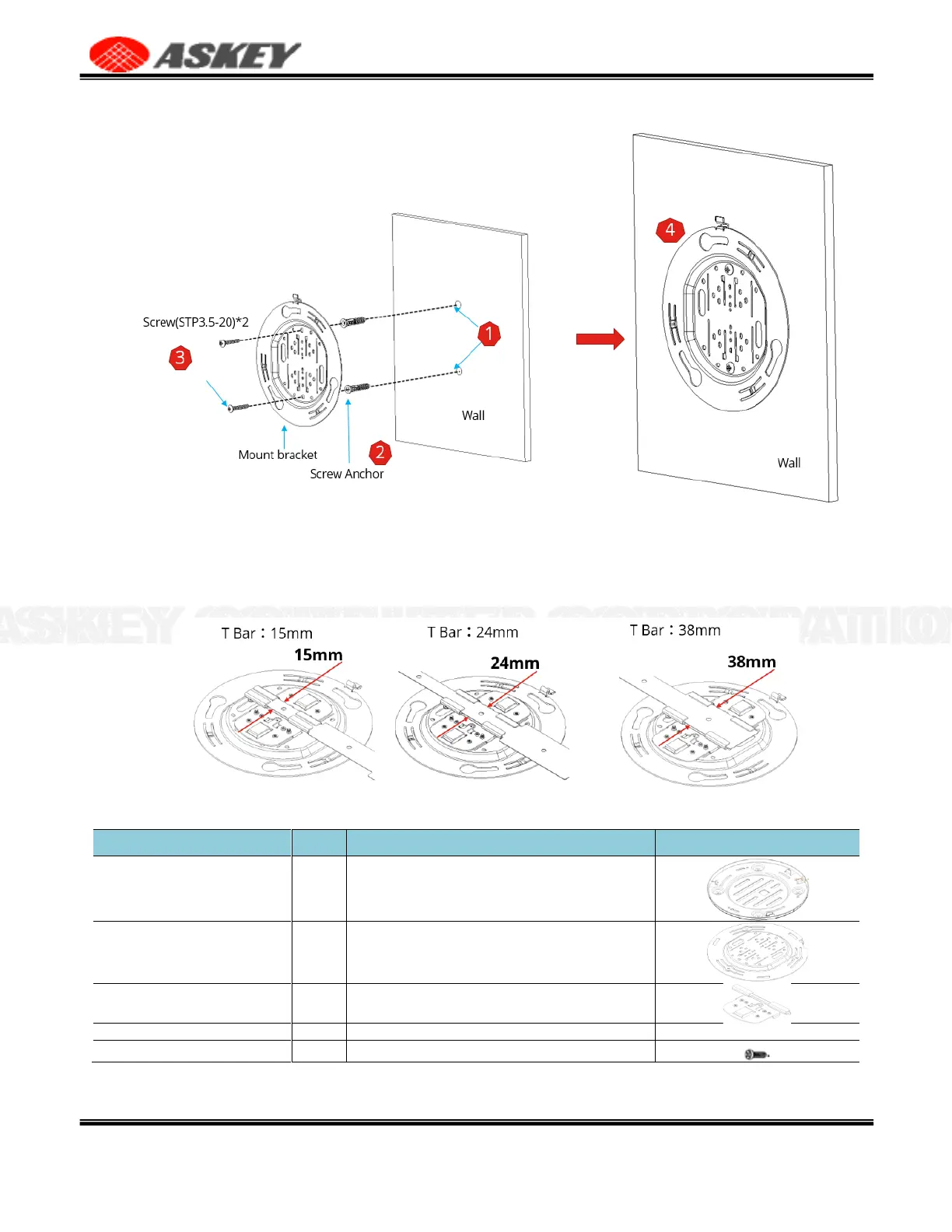 Table 6 List of Items for Ceiling Mount
