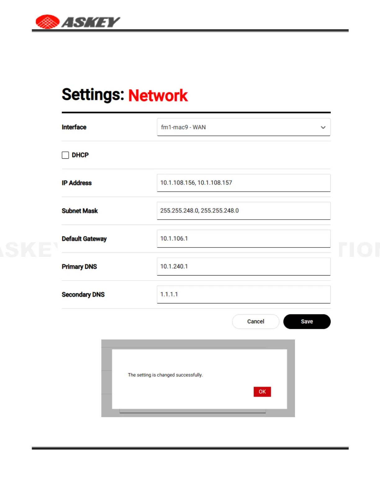 Figure 25. The Askey 5G NR Small Cell Network Page with the multiple IP addresses