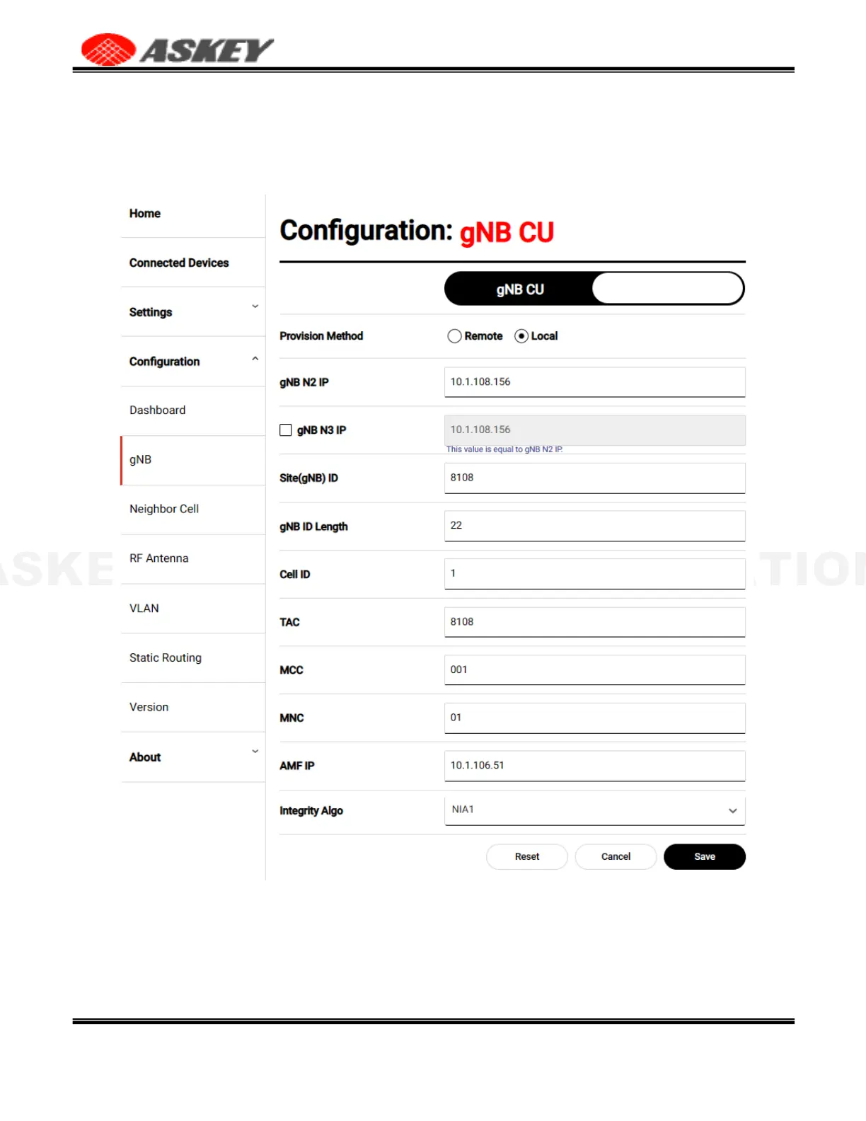 Figure 33. The Local Provision Method in gNB Configuration