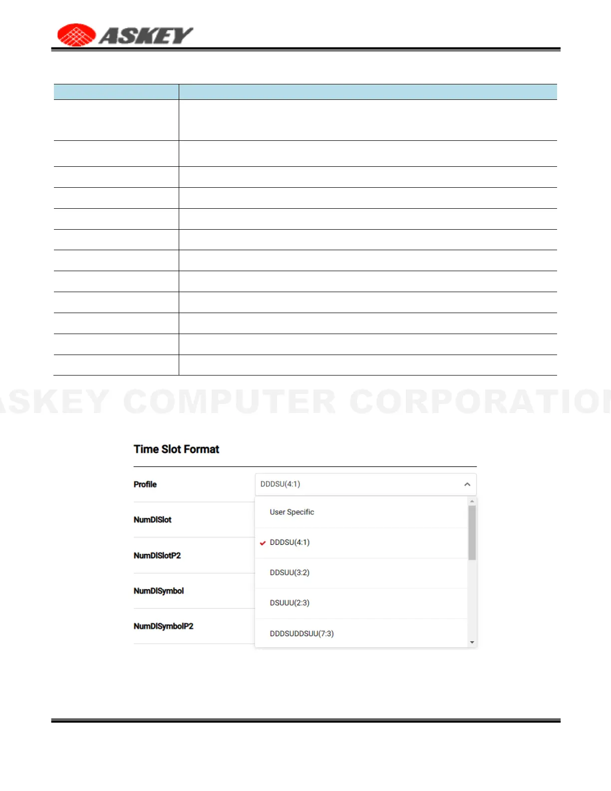 Figure 42. The Askey 5G NR Small Cell DU Configuration – Time Slot Parameters