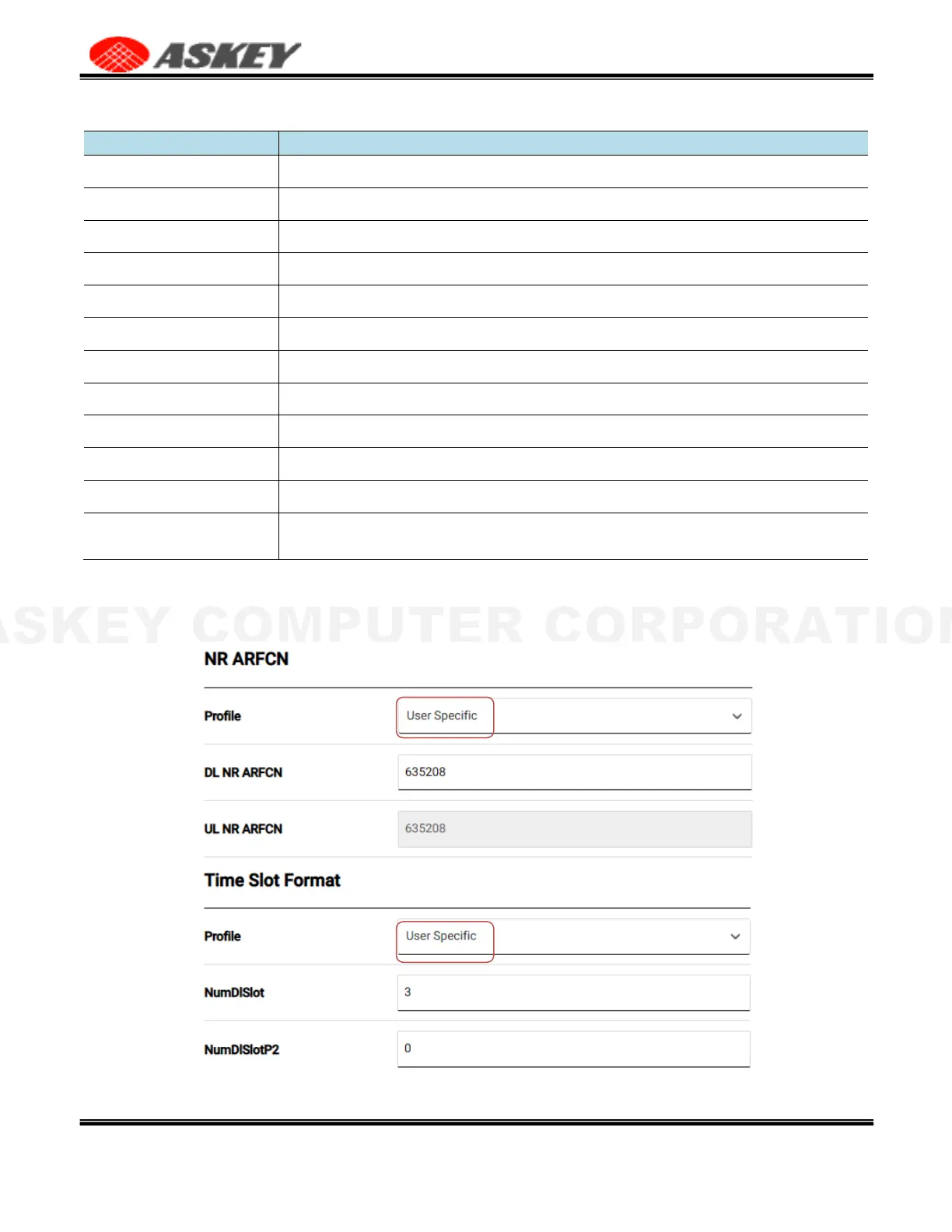 Table 17. The Askey 5G NR Small Cell DU Configuration – Time Slot Format