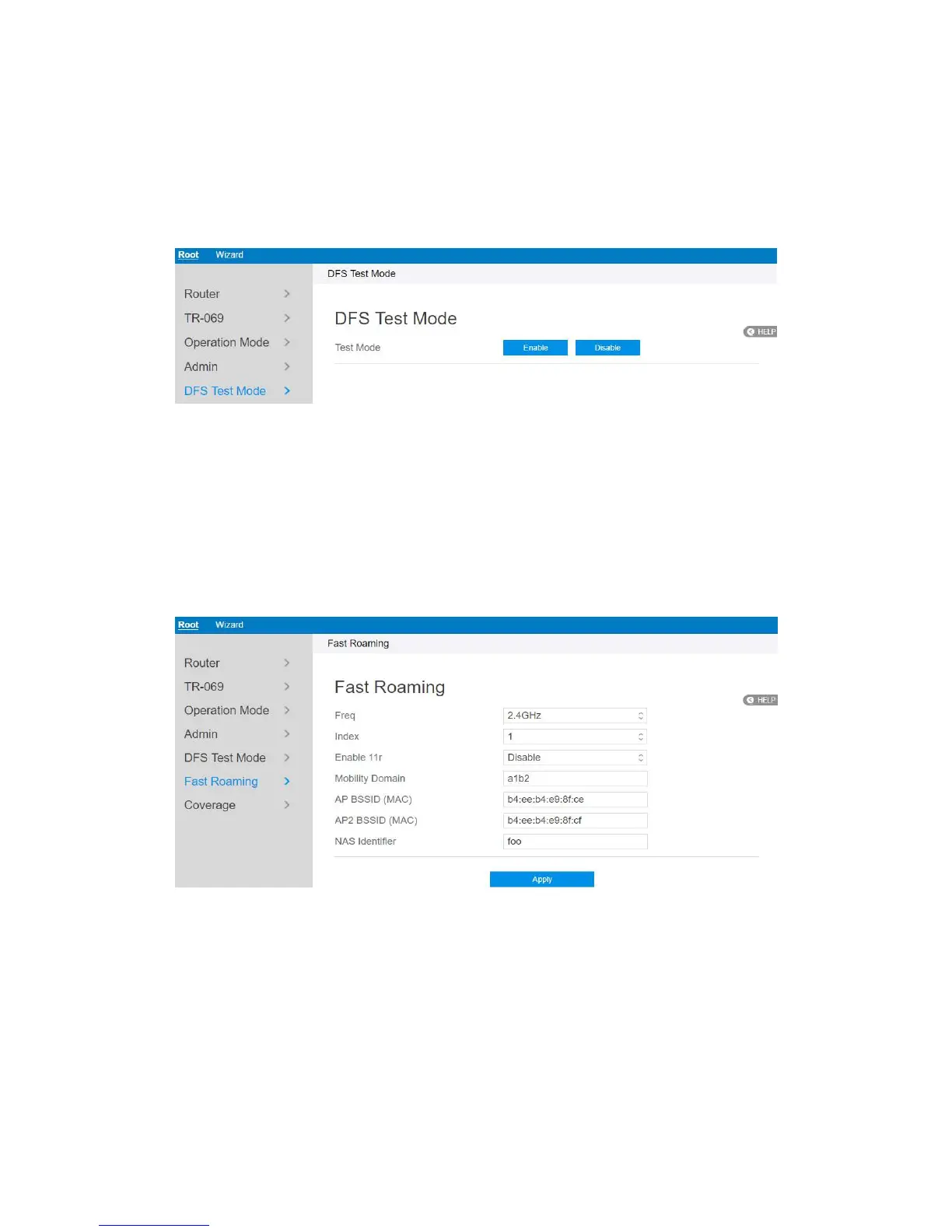 1. From the navigation panel, go to Root > DFS Test Mode.