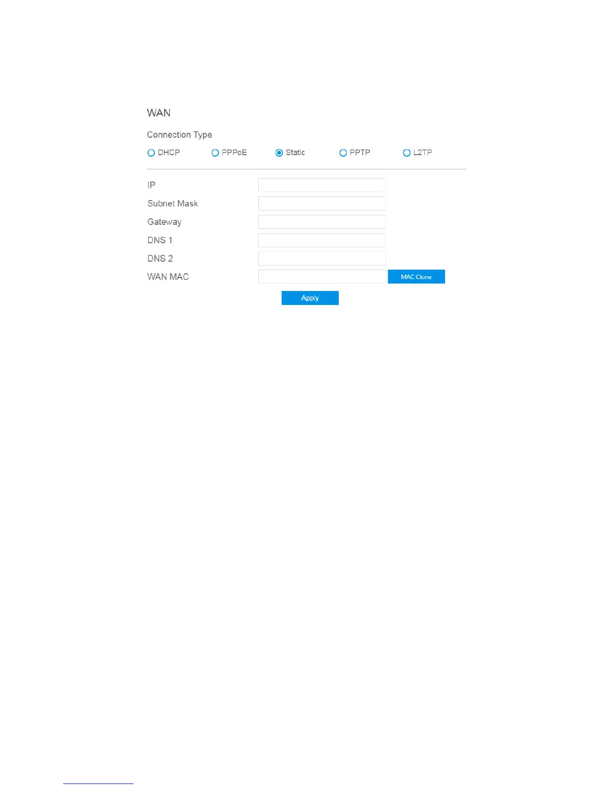 • Subnet Mask: If WAN connection requires a static IP address, key in the
