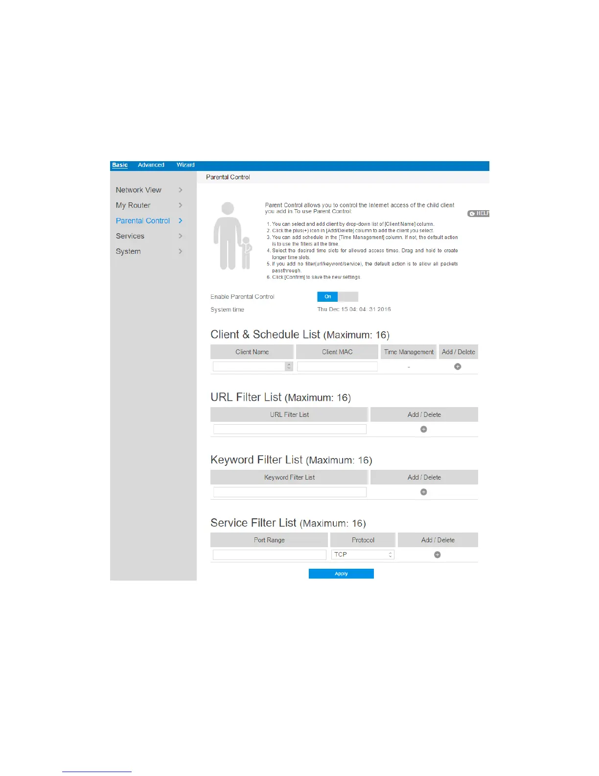 2. Enable Parental Control: Select On to enable parental control, Select Off to