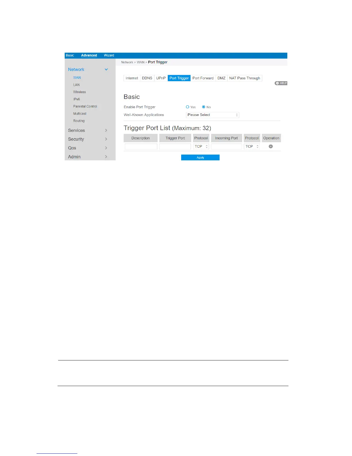 2. Enable Port Trigger: Check to enable or disable Port Triggering.