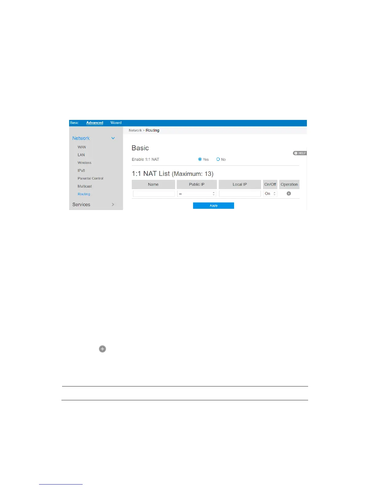 2. Enable 1:1 NAT: Check [Yes] to enable this function, check [No] to disable this