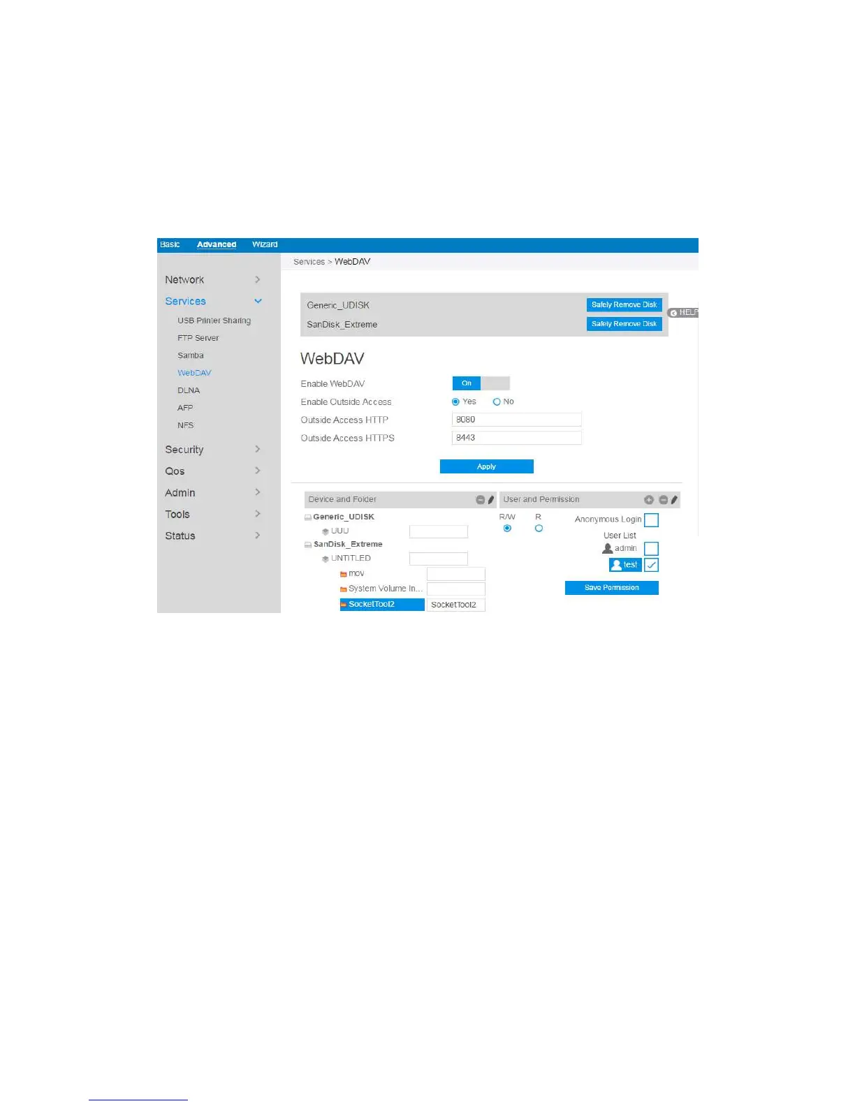 1. From the navigation panel, go to Advanced > Services > WebDAV Server.