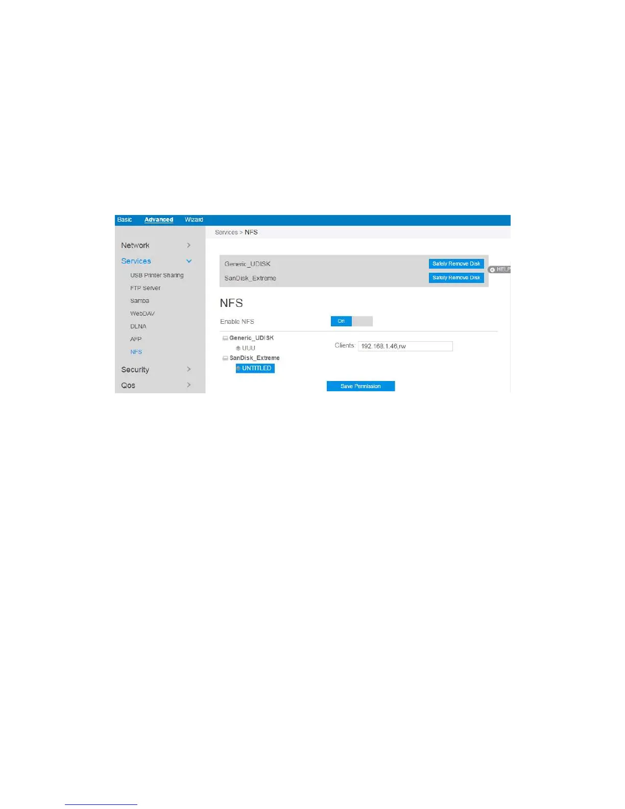 3. Enable NFS: Enable or disable NFS service. When disabled, users can't
