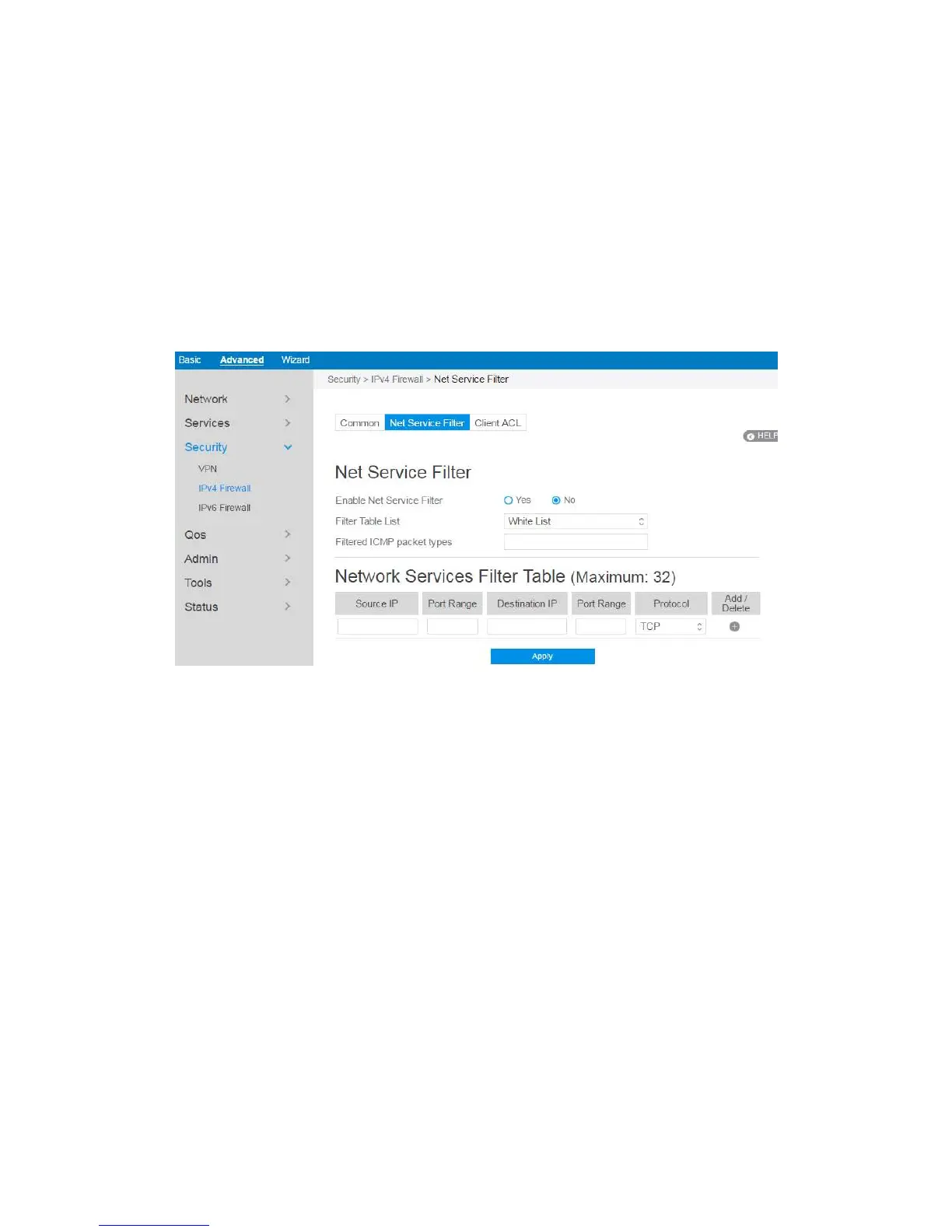 1. From the navigation panel, go to Advanced> Security> IPv4 Firewall> Net