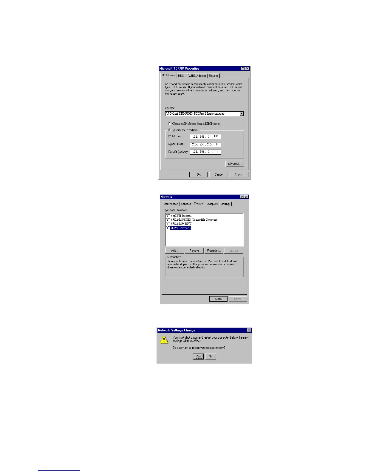 Step10 When prompted with Network Settings Change dialog box, click Yes to restart