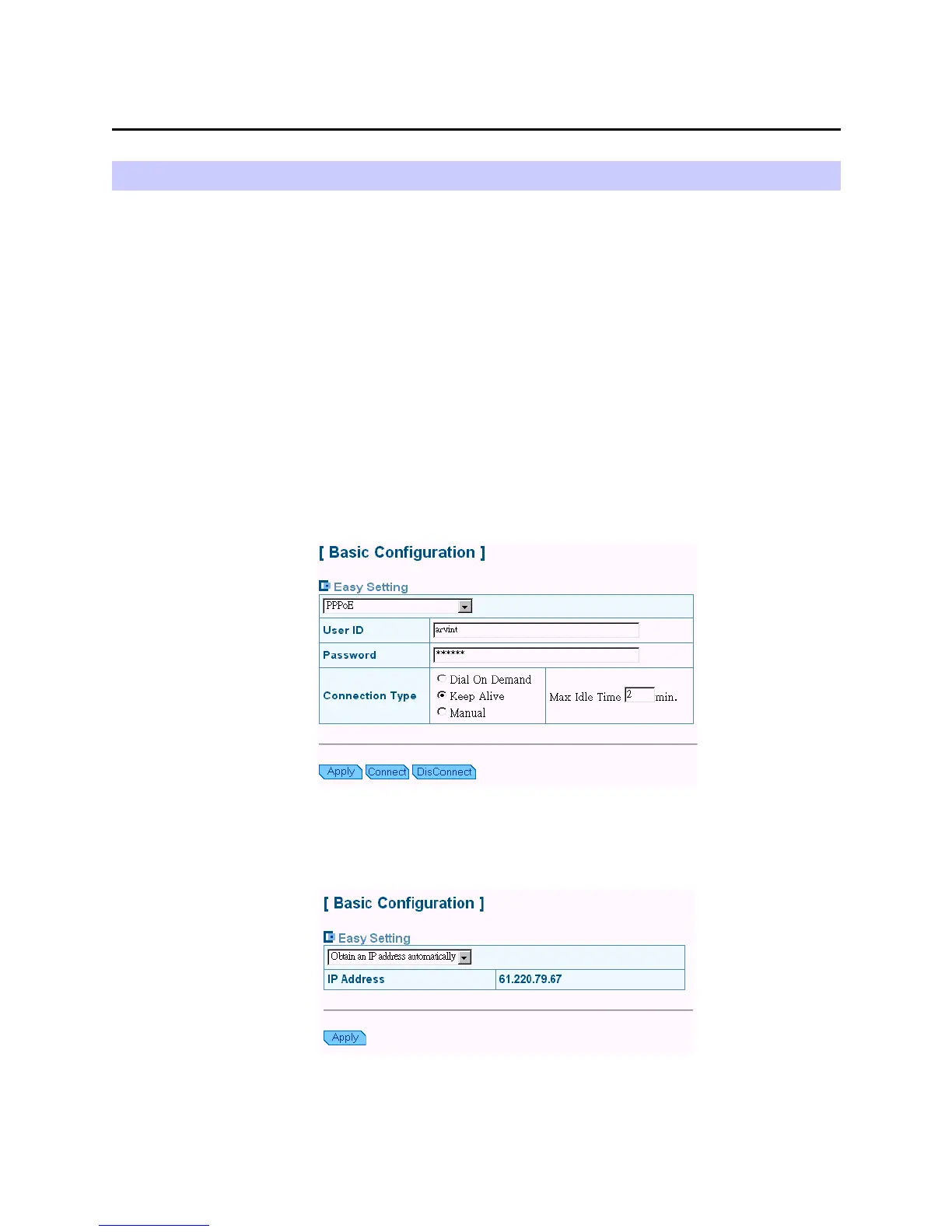1. Enter the user ID (user name) and password provide by your Internet service provider.