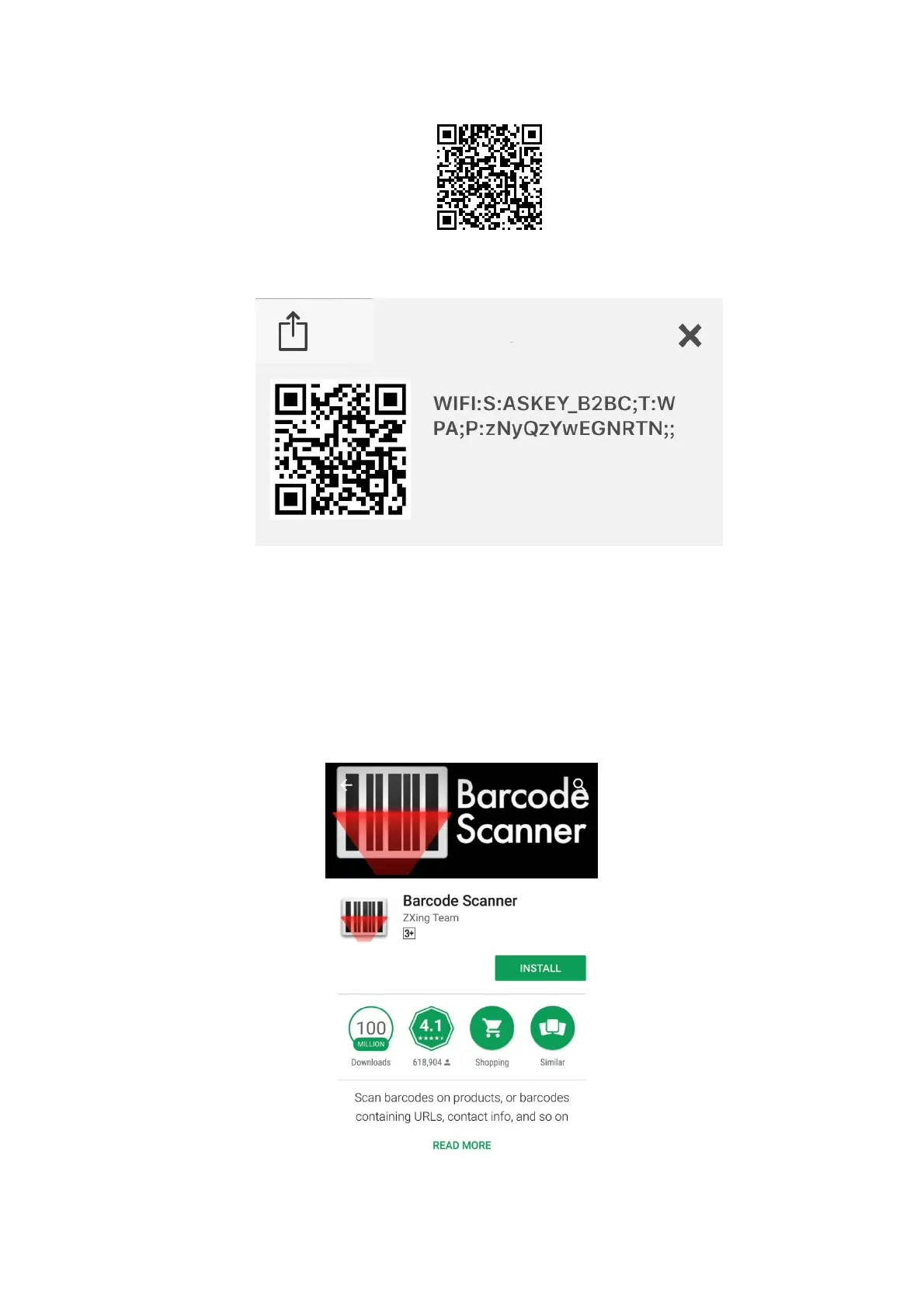 For Android users, you can install “Barcode Scanner“ app to scan Wi-Fi QR code, and the smart