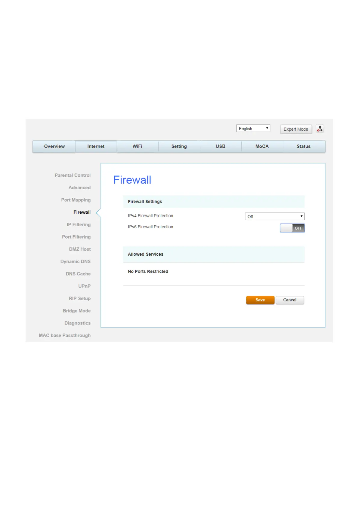allows access to even fewer services. The Off setting allows all traffic to pass.