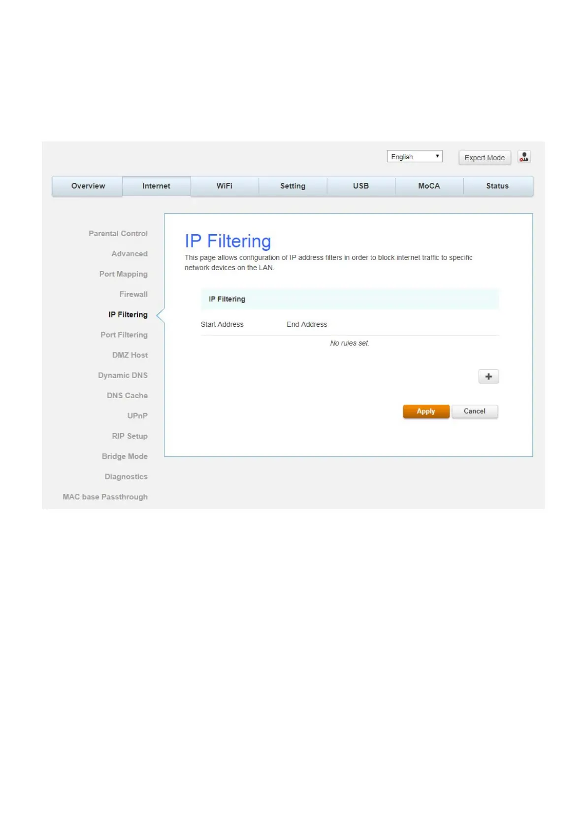 This page enables you to enter the IP address ranges of PCs on your LAN that you don’t want