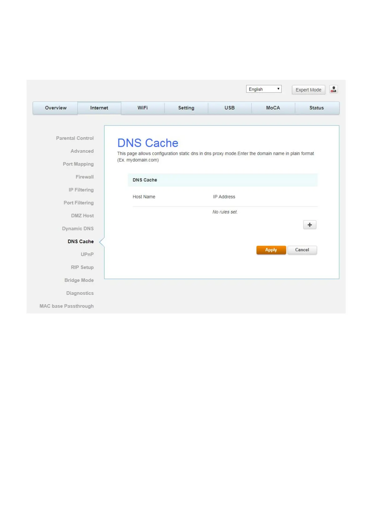 This page allows configuration static DNS in DNS proxy mode. Enter the domain name in