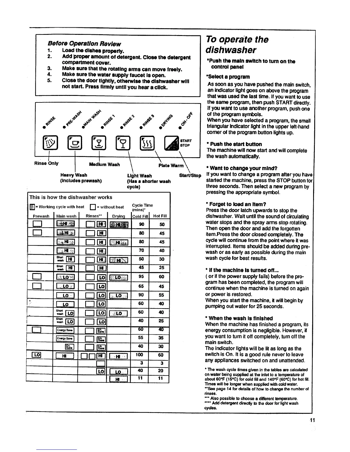 Asko 1502 - To Operate the Dishwasher; Before Operation Review
