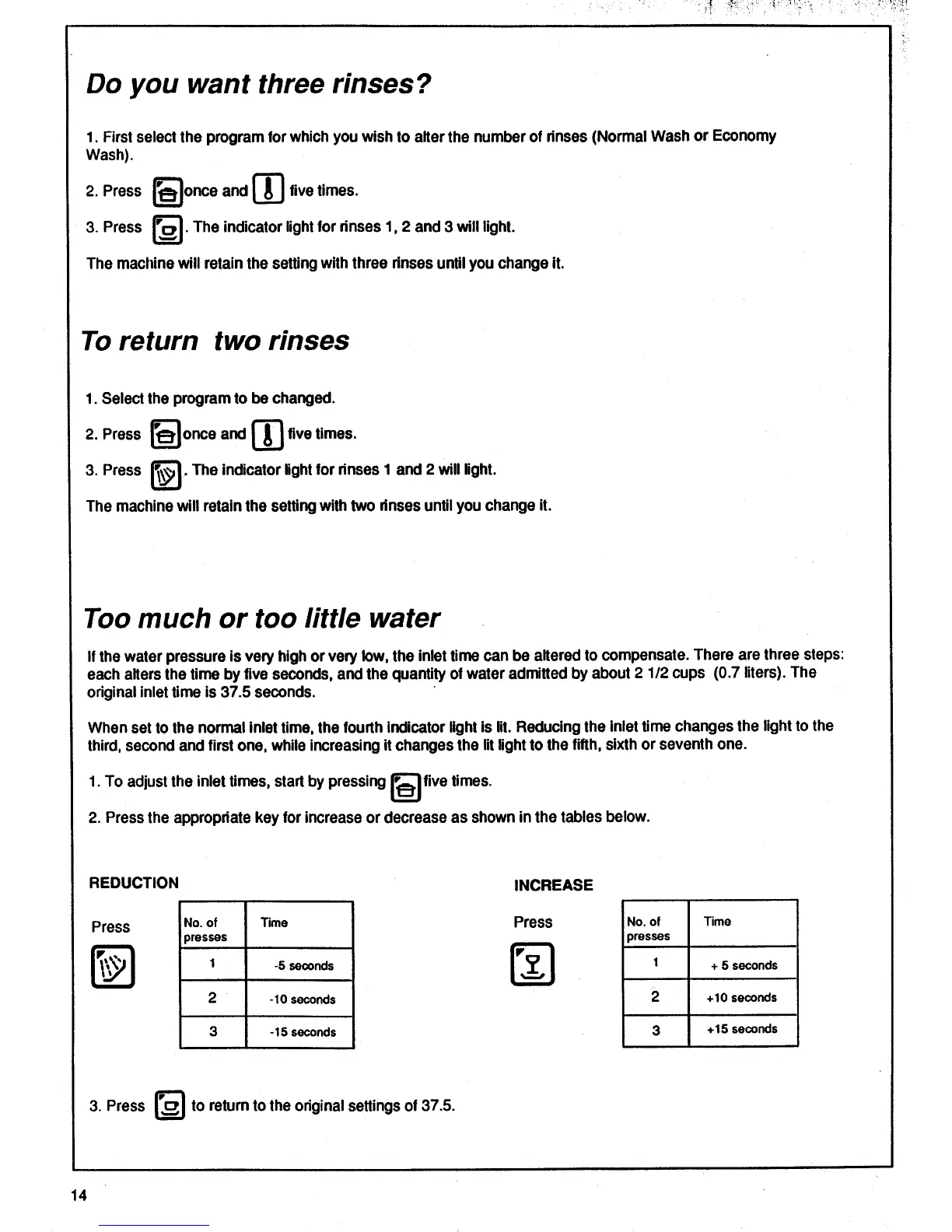 Asko 1502 - To Return Two Rinses; Too Much or too Little Water