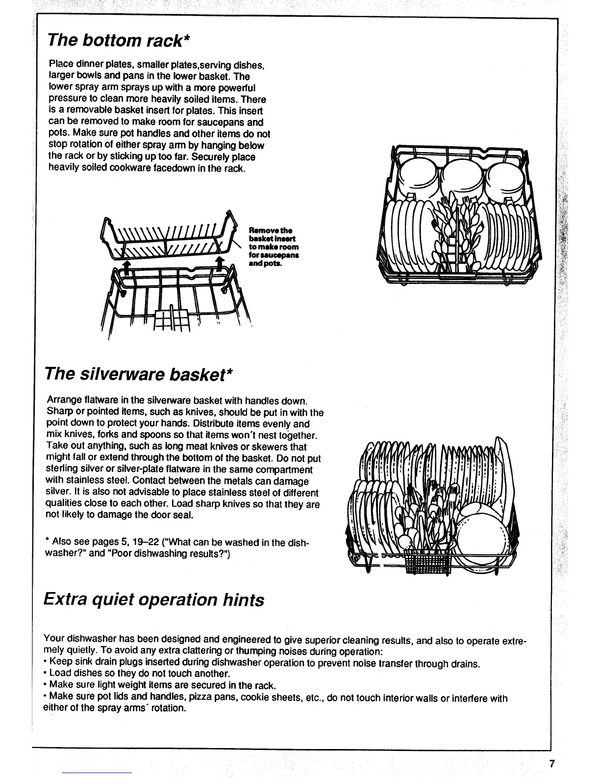 Asko 1502 - The Bottom Rack; The Silverware Basket; Extra Quiet Operation Hints