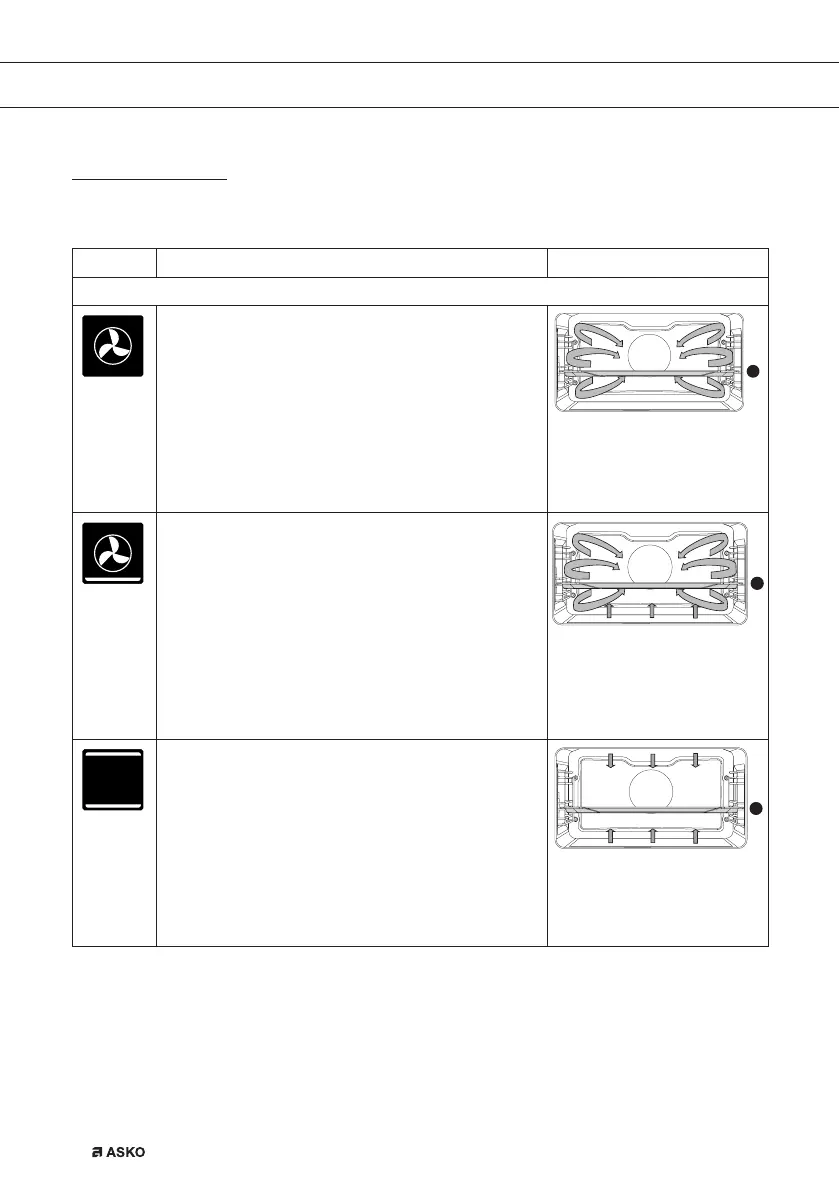 Asko BO6SA2F3-42 - Comprehensive Functions Table