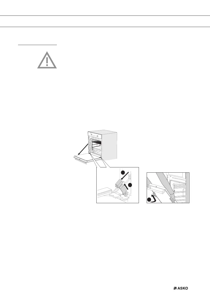 1. Hold the door at an angle of approximately 45° in front of the oven.