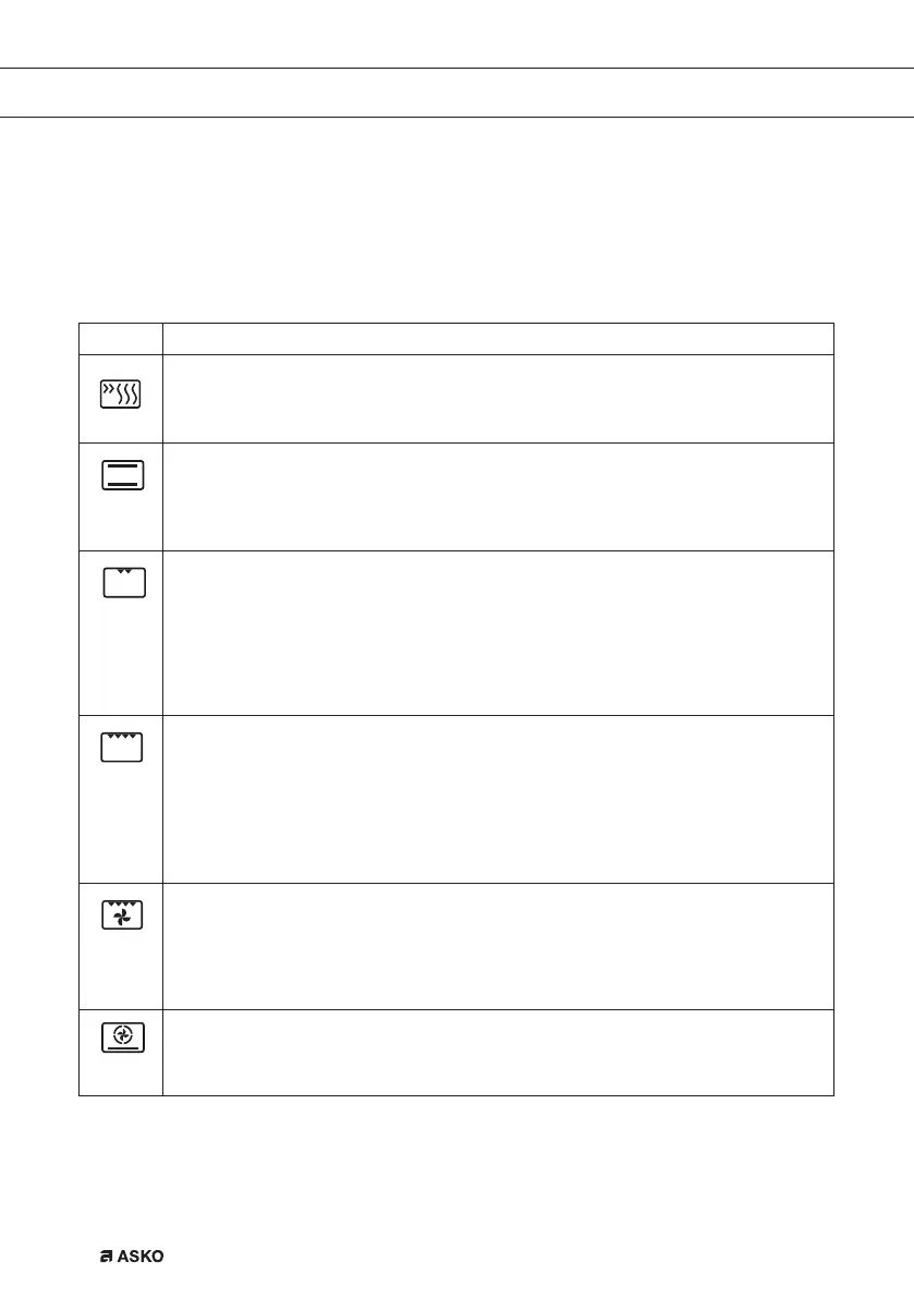 Oven functions (symbols are on the oven function knob)
