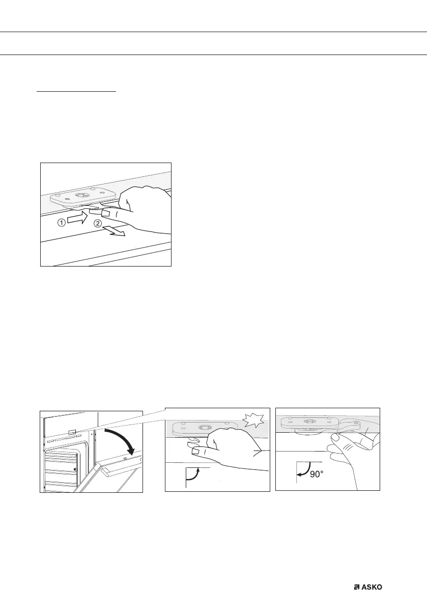 ▷ Open the door slightly and move the latch in the middle top site of the door to the right.