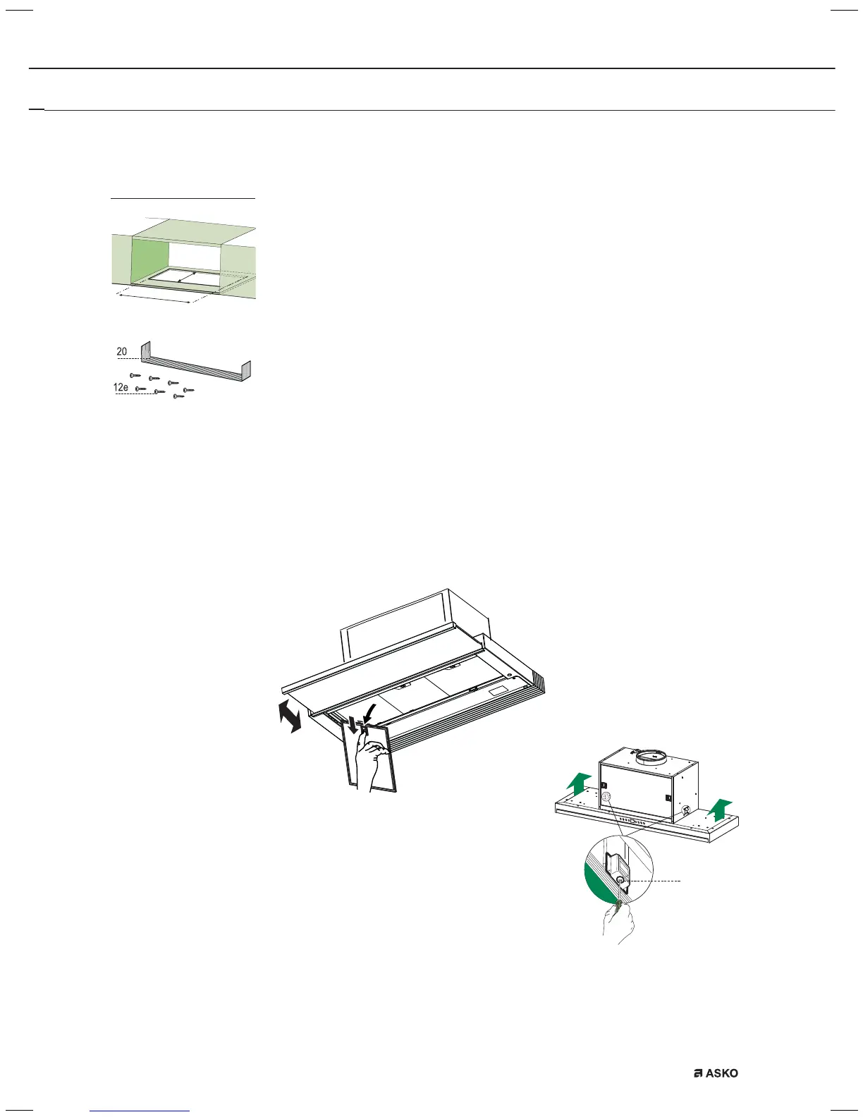 • The hood can be fitted directly on the lower surface of the wall units