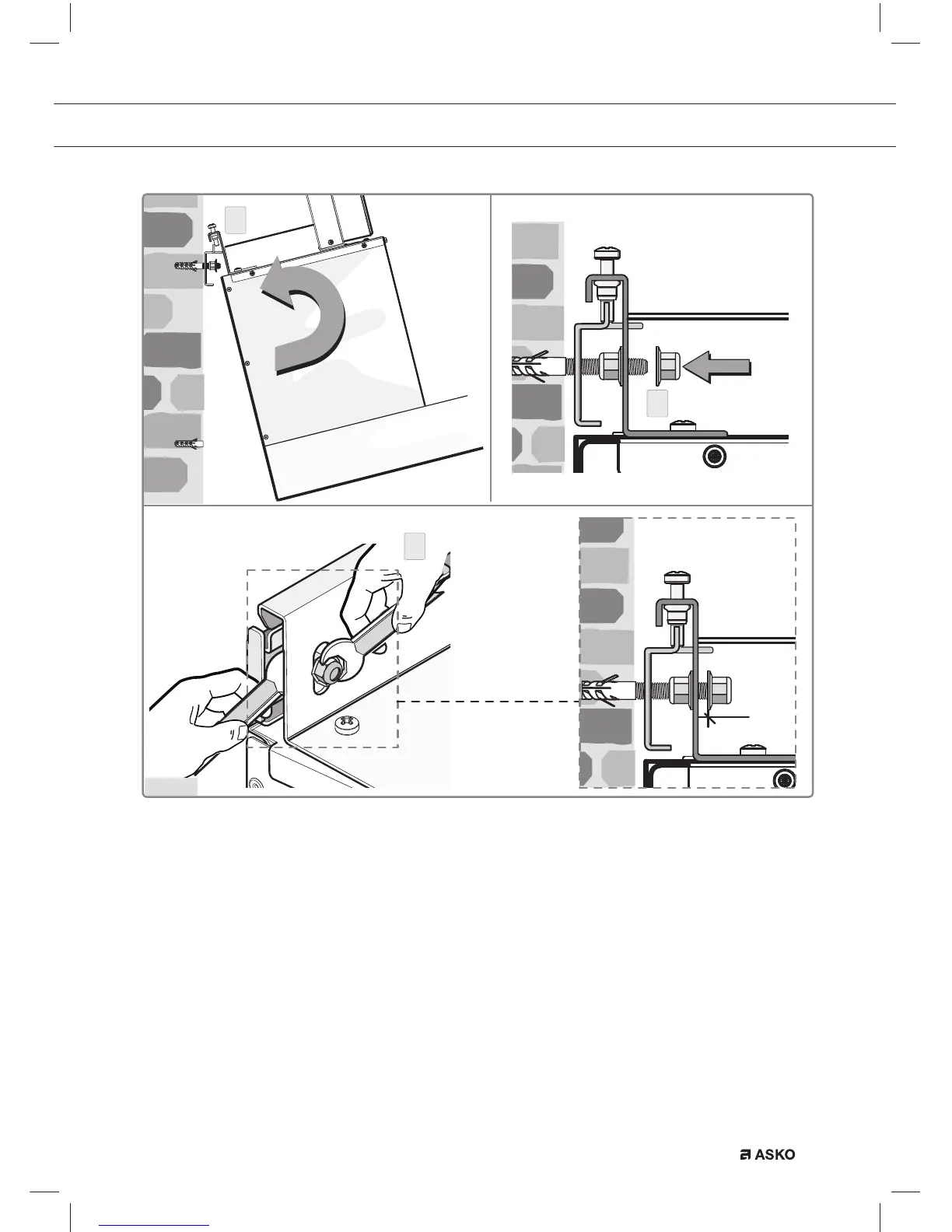 - Position the cooker hood and secure it to the bracket by applying the nut to the screw