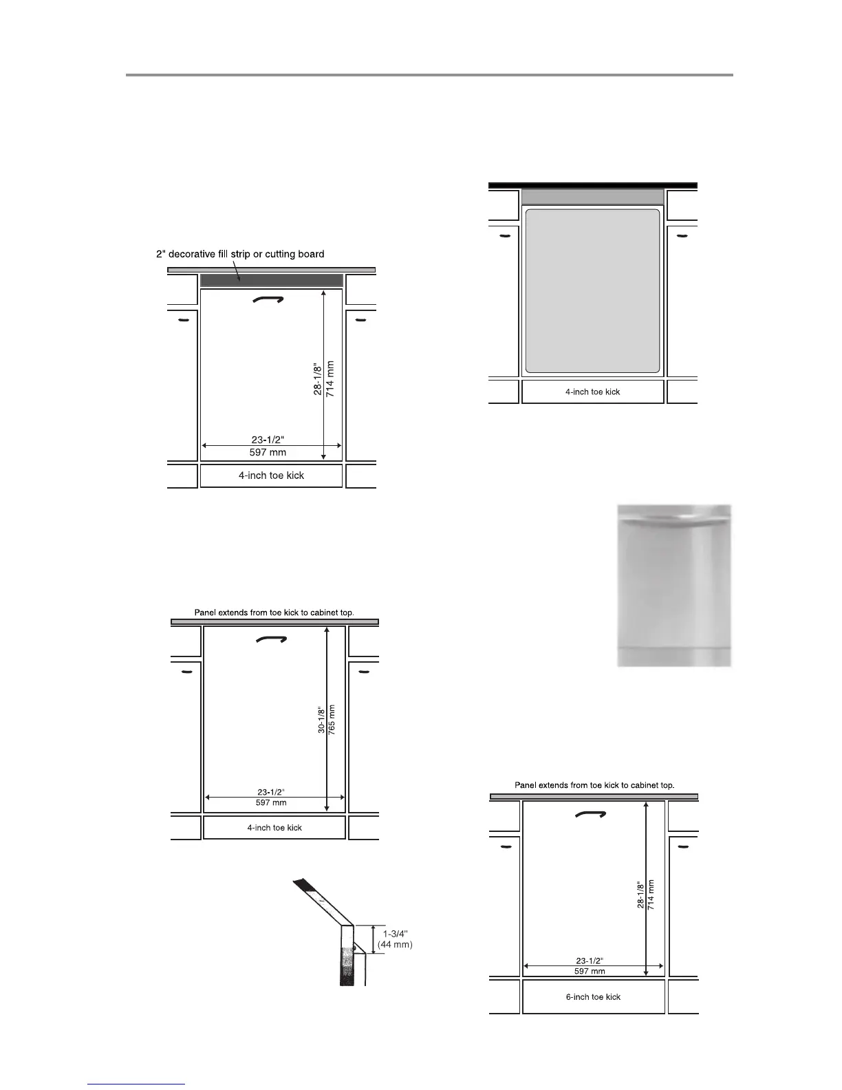 dishwasher door, a 2” (51 mm) decorative fill strip or