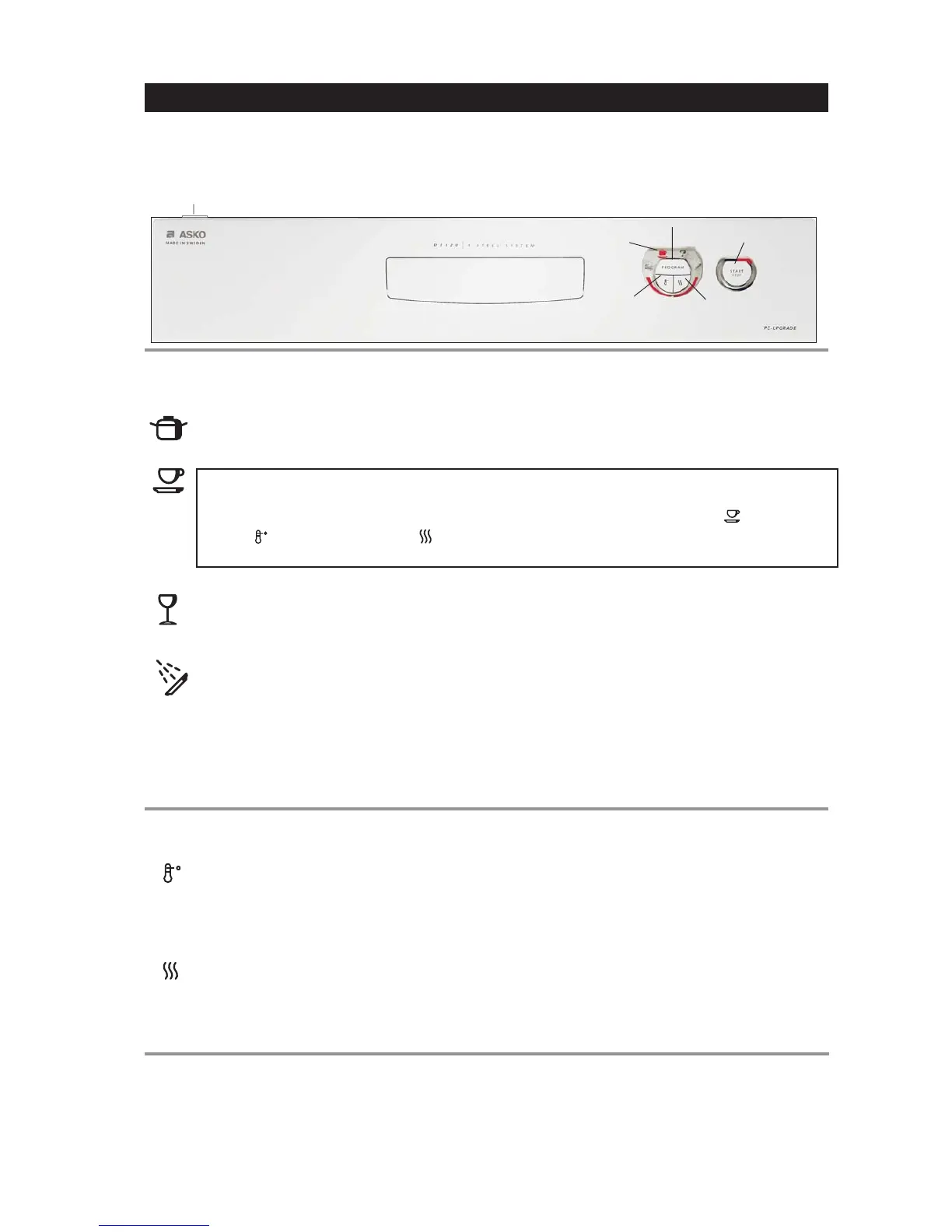 Votre lave-vaisselle ASKO a un panneau de commande à boutons tel qu’indiqué plus bas. Pour choisir un programme