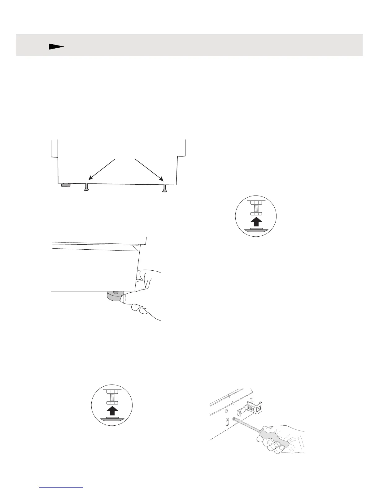 5. Adjust the front feet by turning them clock-