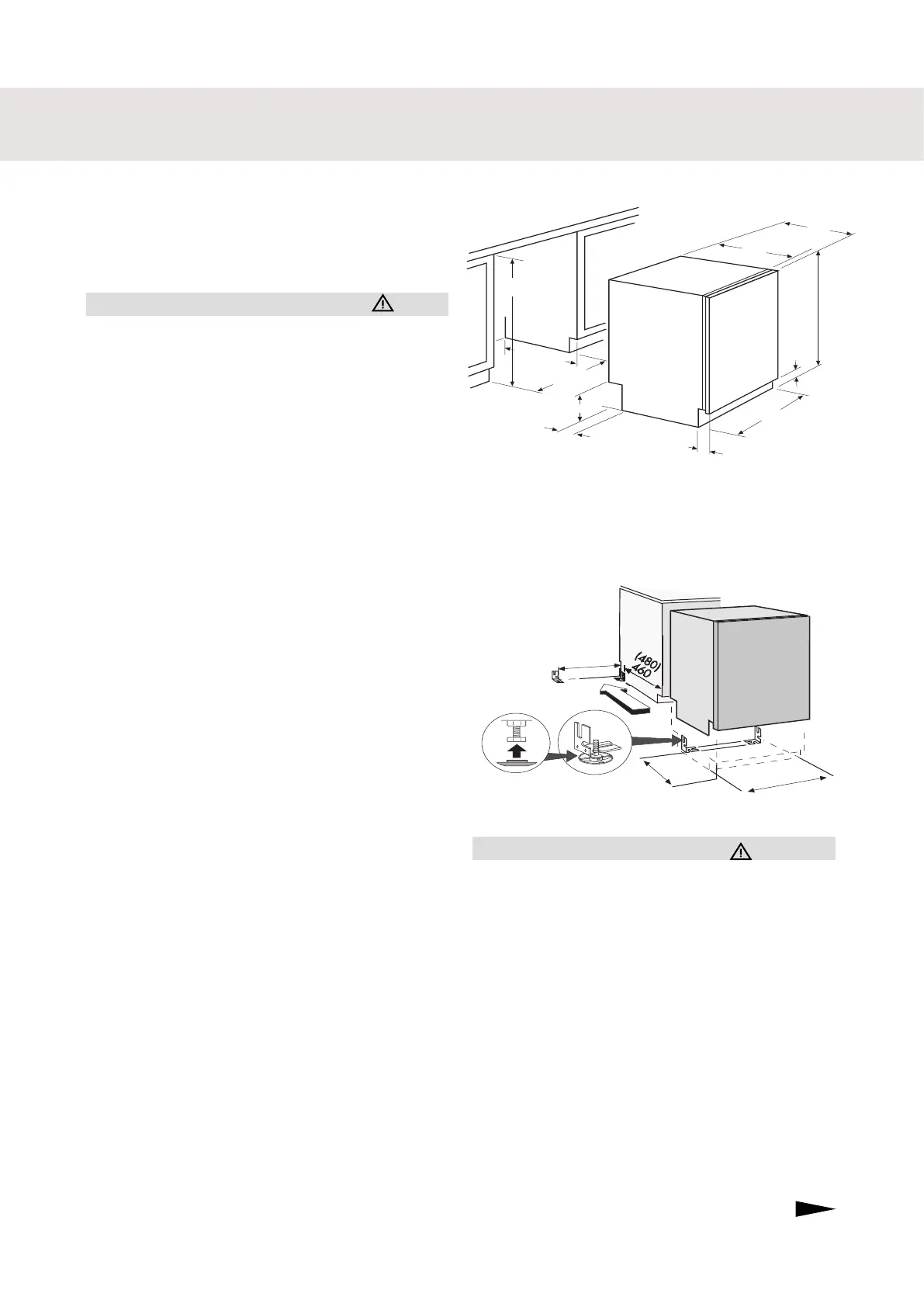placed on the open door. If the dishwasher is to
