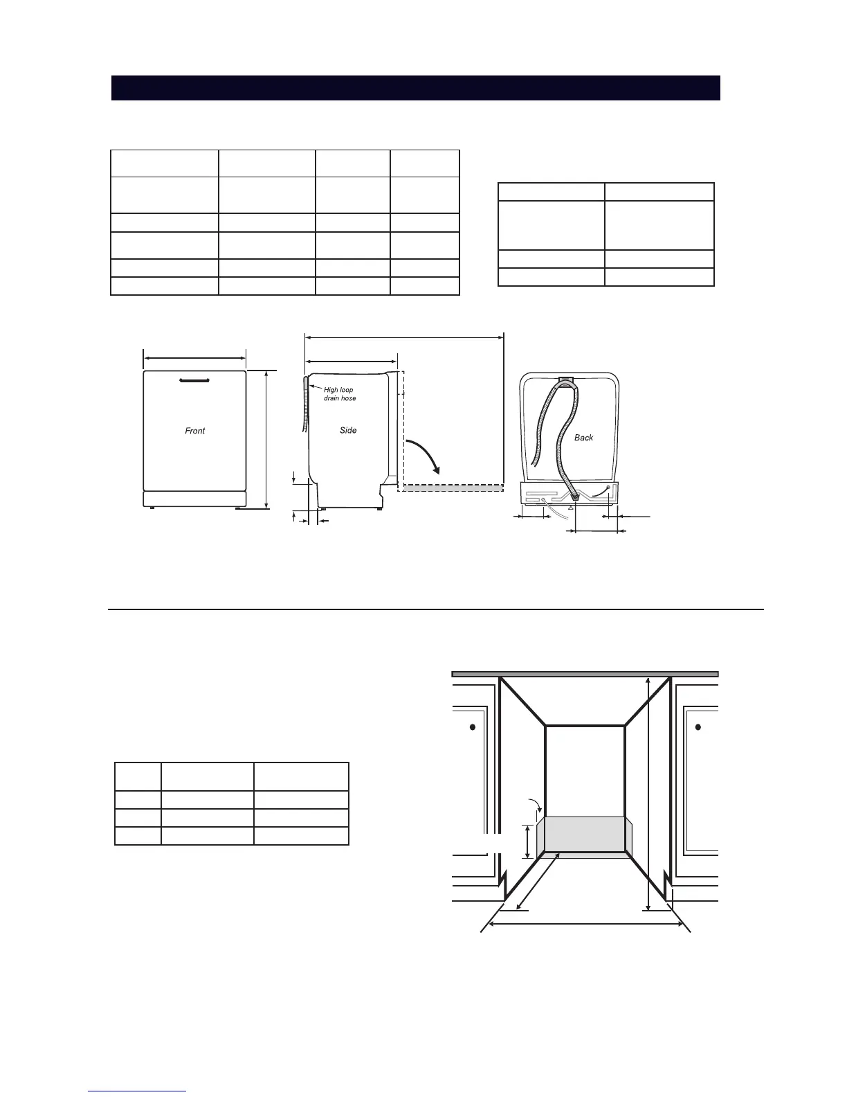 *If an accessory fill strip is used for FI models, 3/8” (9.5mm) must be added to the dishwasher height and cutout height