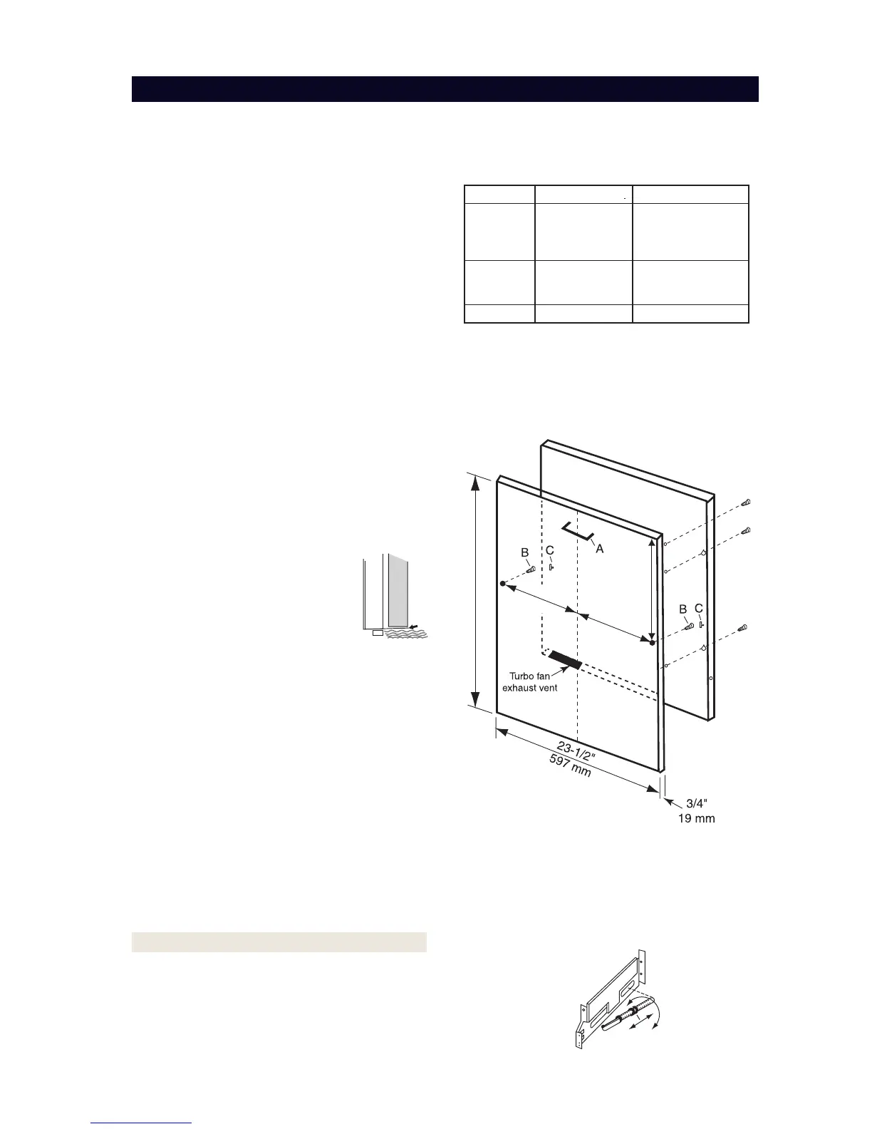 Two 3/8” screws (B) for temporarily hanging the