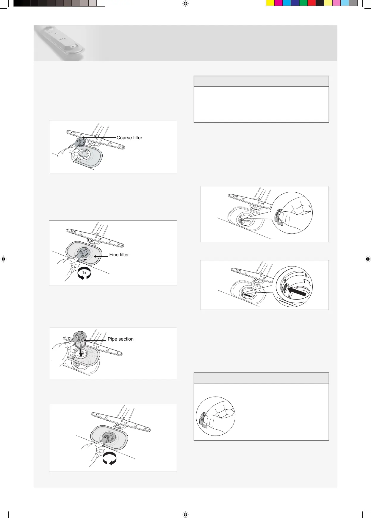 3 Remove and clean the fine filter.