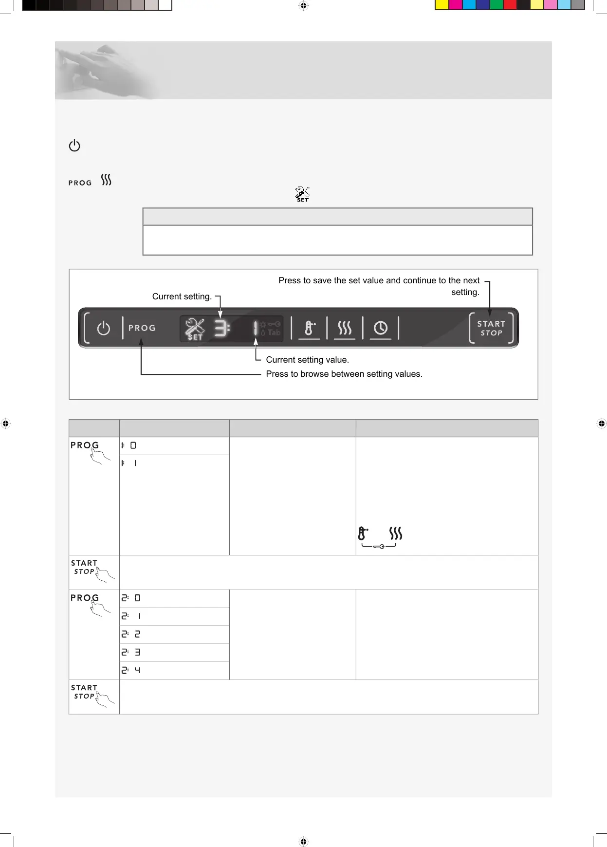 If you do not want to change any other settings, keep pressing Start/Stop to step through the entire settings menu.