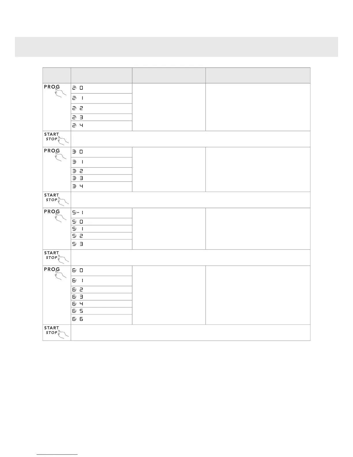Press Start/Stop to save the setting value and continue to the next setting.