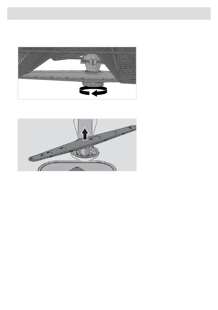 • Unscrew the spray arm bearings counterclockwise to remove the spray arm from the upper